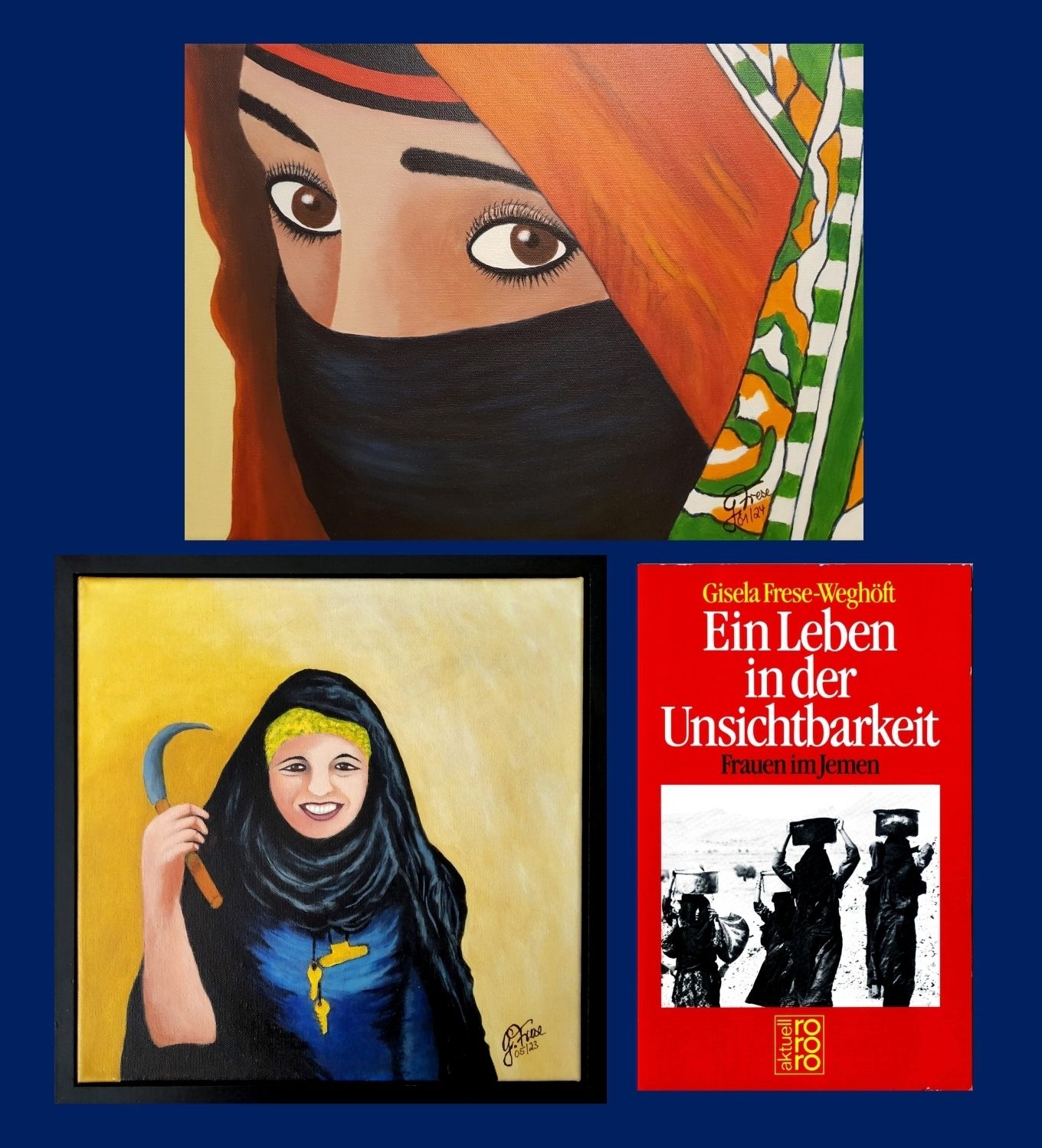 … malt mit Acrylfarben meist abstrahiert oder abstrakt. Einige Motive oder ihre Vorliebe für kräftige Farben wurden durch sieben Jahre als Lehrerin im Entwicklungsdienst in Simbabwe und im Jemen und durch Urlaubsreisen beeinflusst. Als Hobbygärtnerin malt sie auch Interpretationen der Natur. Sie erzählt Geschichten mit ihren Bildern und betätigte sich zudem früher mit umfangreichen Veröffentlichungen als Autorin. Ihre malerische Kreativität zeigt sich in ganz unterschiedlichen Stilrichtungen und Motiven. Bewußt verzichtet sie darauf fotorealistisch zu malen. Was sie bewegt ist die Anmutung eines Motivs, Bildes, einer Farbe, was diese für sie emotional transportieren. Bei den abstrakten Bildern spielt sie mit Farben, Formen, manchmal auch mit Strukturen. Viele ihrer Bilder sind durch den Fokus auf das Wesentliche gekennzeichnet. Auf Malreisen, in Kursen und durch online Malvideos bildet sie sich regelmäßig in der Malerei weiter. Sie wohnt in Huchting seit 2002, malt seit Ende 2015 und hat dies intensiviert, seit sie im Ruhestand ist. Wöchentlich malt sie gern in einer Vereinsgruppe und ist Mitglied im Kunstverein seit 2017. Für den Verein gestaltet sie diese Homepage seit 2019. Im Juli 2020 wurde sie zur 1. Vorsitzenden des Vereins gewählt. Ihre Bilder zeigte sie auf unterschiedlichen Vereinsausstellungen. Alle unten gezeigten Bilder sind mit Acrylfarben auf Leinwand mit Keilrahmen gestaltet. Fotos *F Angaben im Impressum