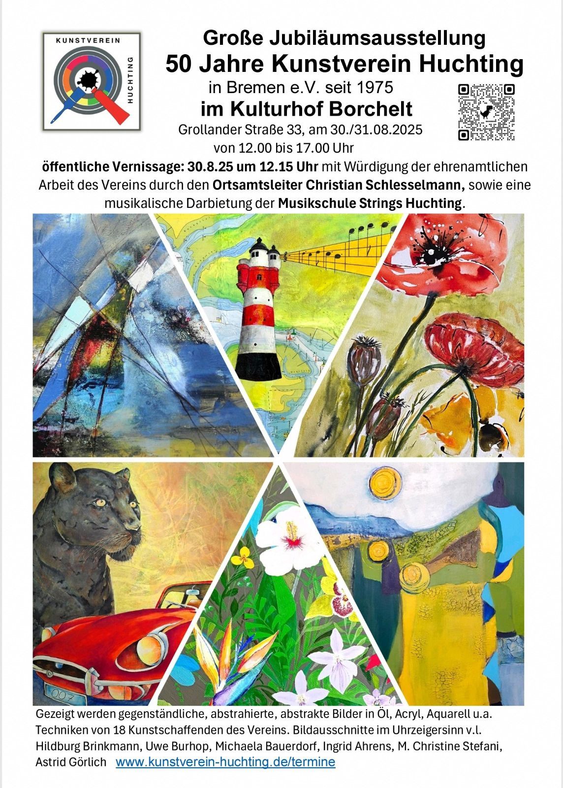 Kunstverein Huchting im Kulturhof Borchelt beendet, wir zeigten eine grosse Bilder Ausstellung zum 50. Jubiläum, am 30./31.8.25